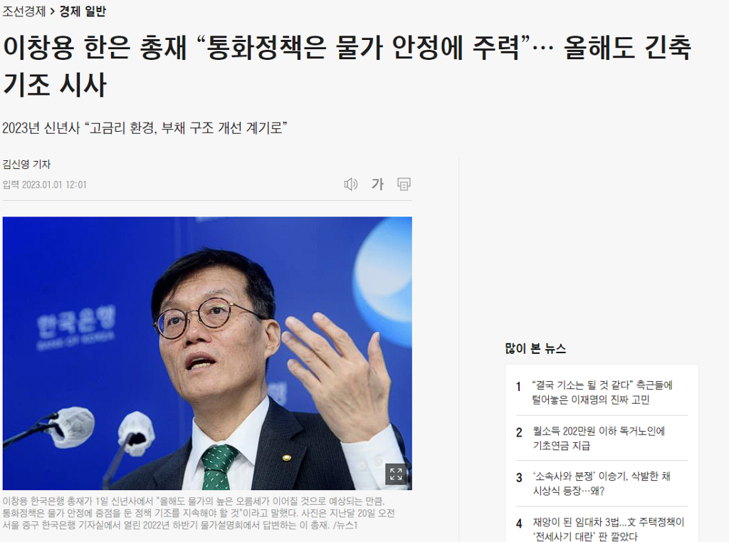 - 소비자물가 상승률이 1990년대 말 외환위기 이후 가장 높은 5.1%를 기록한 가운데 올해도 인플레이션이 잦아들기는 어렵다고 판단한다는 뜻이다.