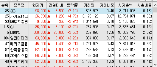 오늘 코스피는 그렇다 할만한 것이 딱히 없는데.