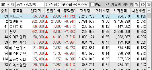오늘도 전체적으로 2차전지, 엔터, 의료기기가 주도하는 모습을 보여줬습니다.