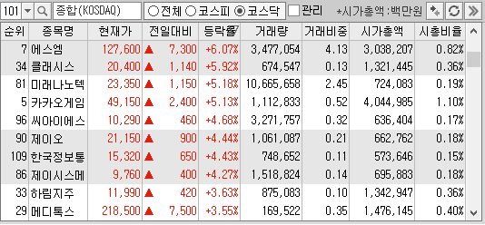 하지만 코스닥이 오늘 볼만 했습니다.