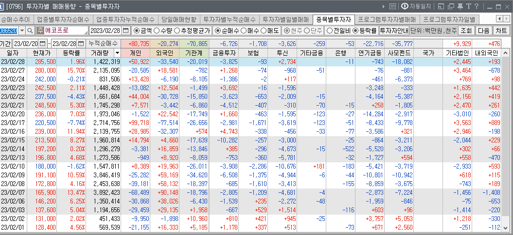 + 엘엔에프, 에코프로, 에코프로비엠 수급